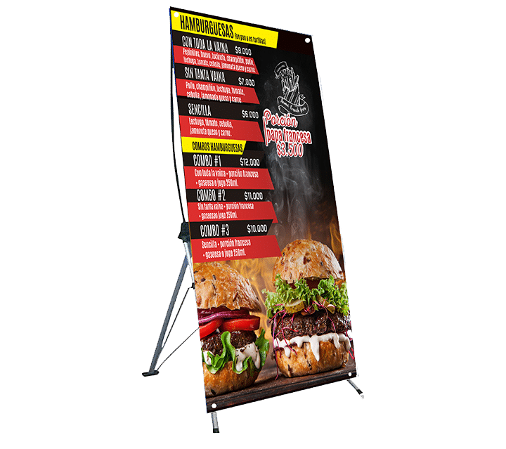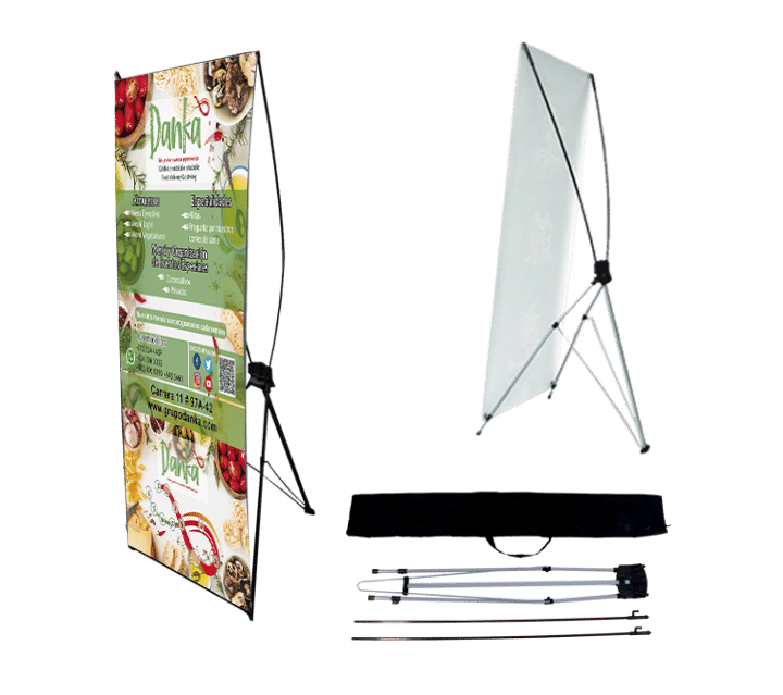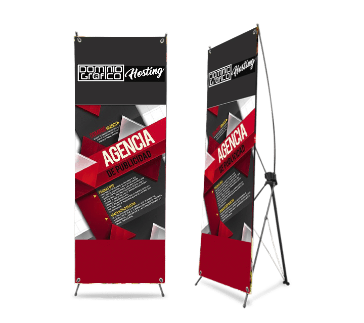 Dominio Gráfico ofrece dos tamaños de pendón araña: 60 x 160 cm y 200 x 100 cm, dos tamaños que se adecúan a la necesidad de cada cliente, o pueden ser complementarios dentro de algún sistema de exhibición personalizado.