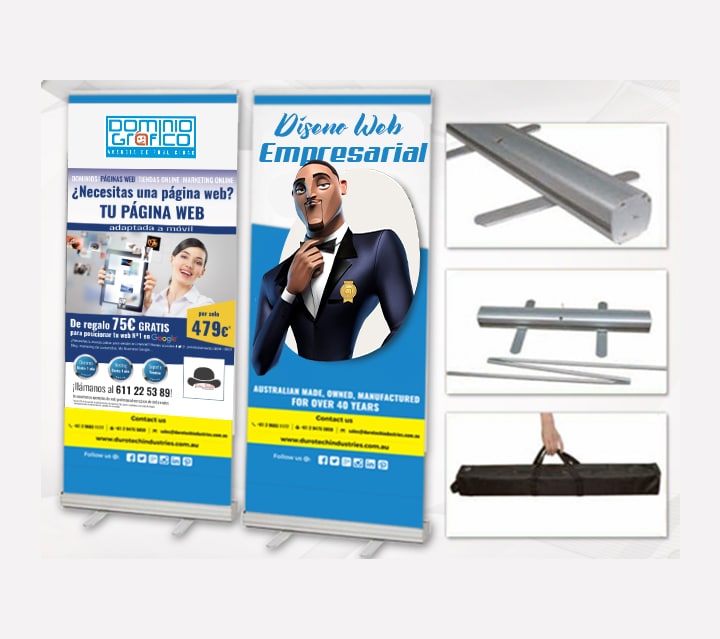 Dominio Gráfico te ofrece un pendón enrollable de extraordinarias características y su medida de 200 x 100 cm, un tamaño que se adecúa a su necesidad requerida, medidas estándar que se manejan en la mayoría de pendones publicitarios como lo es el pendón Araña.